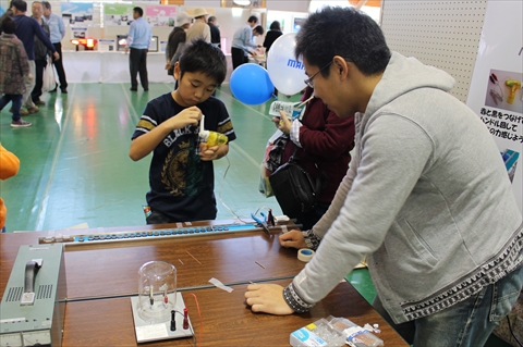 本校が出展した「展示・体験エリア」では、42団体が出展し、本校からは4研究室と教育研究技術支援センターが出展しました。