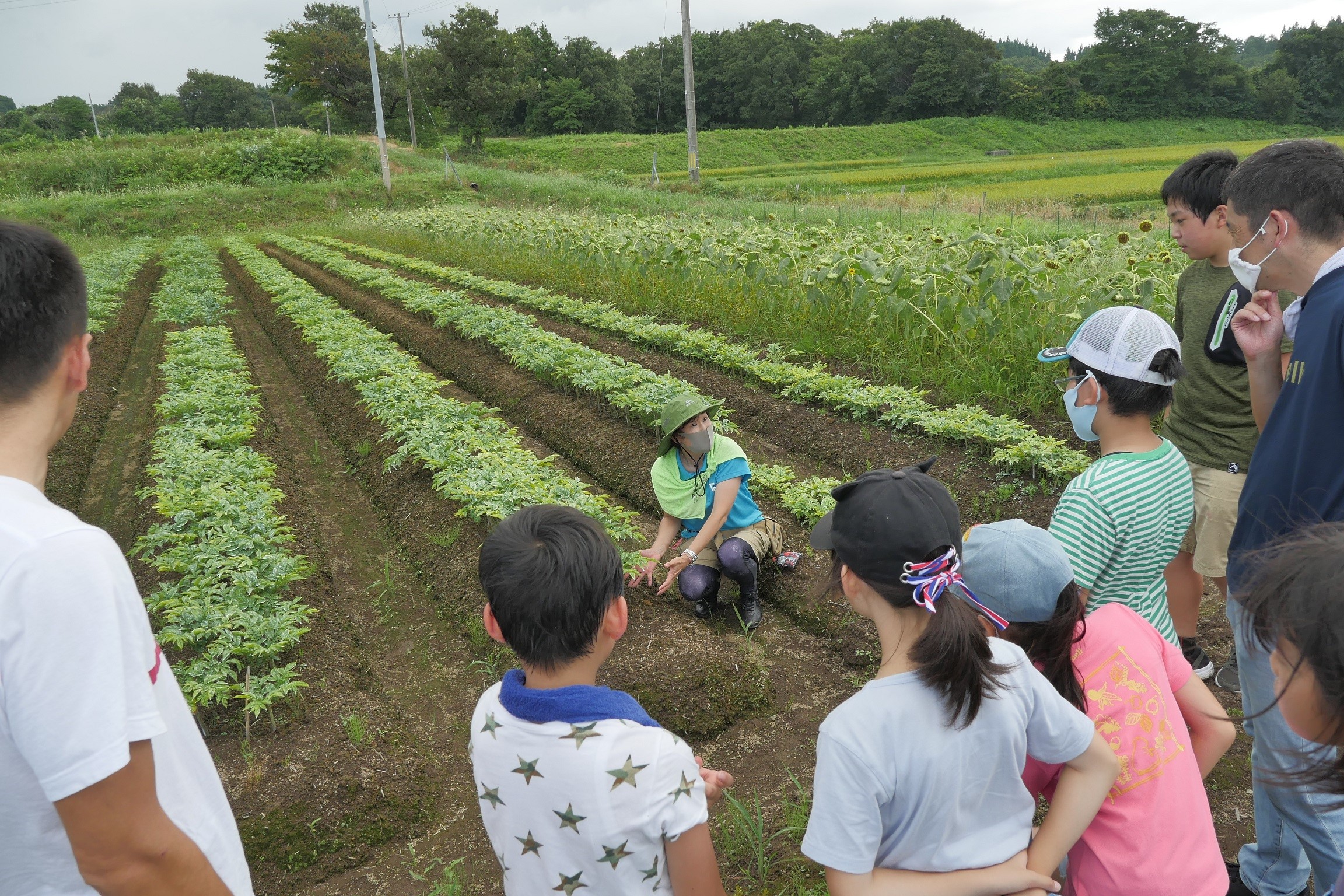 テーマにした野外出前授業『羽黒こんにゃく芋栽培の挑戦の話を聞いてみよう』を開催しました。