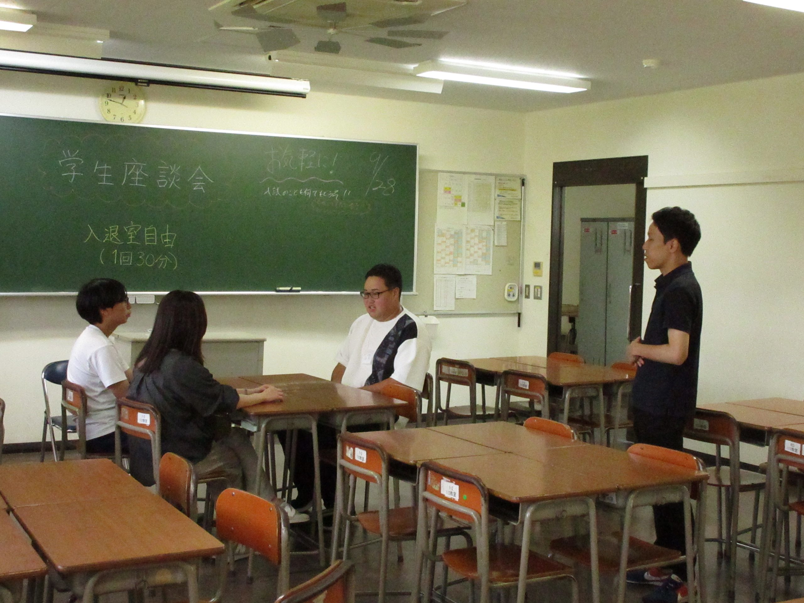 今年度は,中学生には「体験学習」や「基盤教育模擬授業」の計14テーマから1つ体験していただき,「学生生活紹介・学校説明会」や参加者が在学生に学生生活の疑問などを直接質問できる「学生座談会」,保護者向け「個別相談会」,さらには「学生寮見学」や「クイズラリー」等を実施しました。