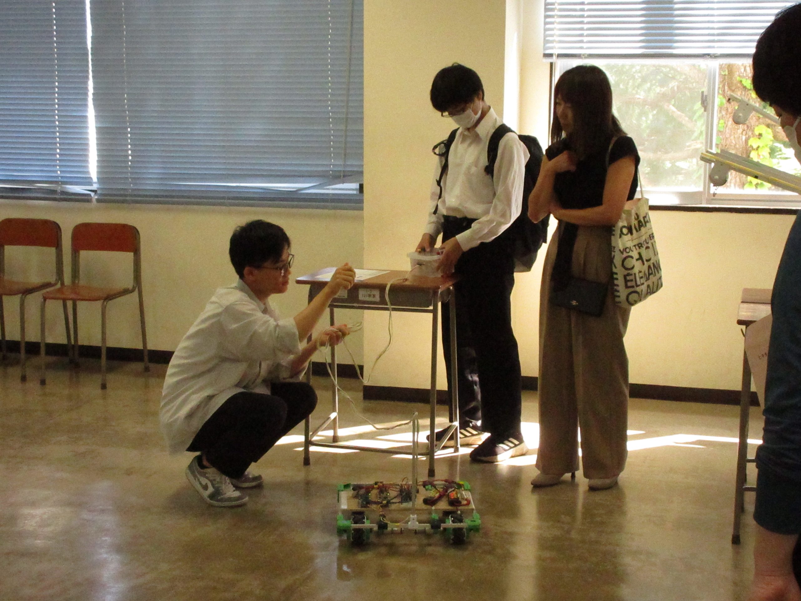 また,本校ロボット技術研究部の「新・かっとび君super」(2024高専ロボコン全国大会に出場)や操作体験用ロボットのデモ展示も行い,会場は多くの参加者で賑わいました。