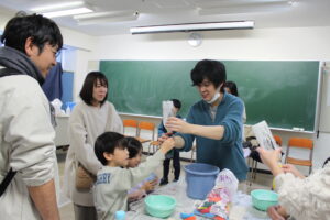 ものづくりや実験を行う体験ブースは、昨年の倍以上の16ブースが出展し、体育館では「紙ひこうきを作って遠くまで飛ばそう!」と題した特別企画も開催しました。体験ブースでは、子どもたちが目を輝かせながら実験や工作に取り組む姿が印象的で、紙ひこうきイベントでは飛ばすたびに歓声が上がり、保護者の方々も一緒に楽しんでいる様子が見られました。