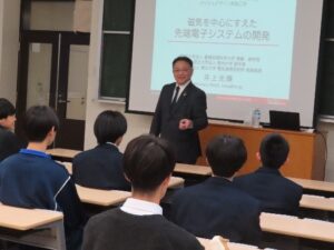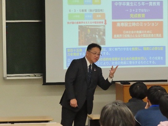 二つ目の講義は、国立高等専門学校機構元理事で、現在、国立大学法人豊橋技術科学大学理事・副学長の井上光輝教授をお招きし、ご講演いただきました。