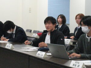 ・12月10日開催の際は、学生会長の化学・生物コース4年 大類崇太さん他10名が参加し、学生会からは、令和7年度の学生会活動報告と授業・カリキュラム関係、建物設備関係、環境福利厚生関係の質問・要望が述べられました。