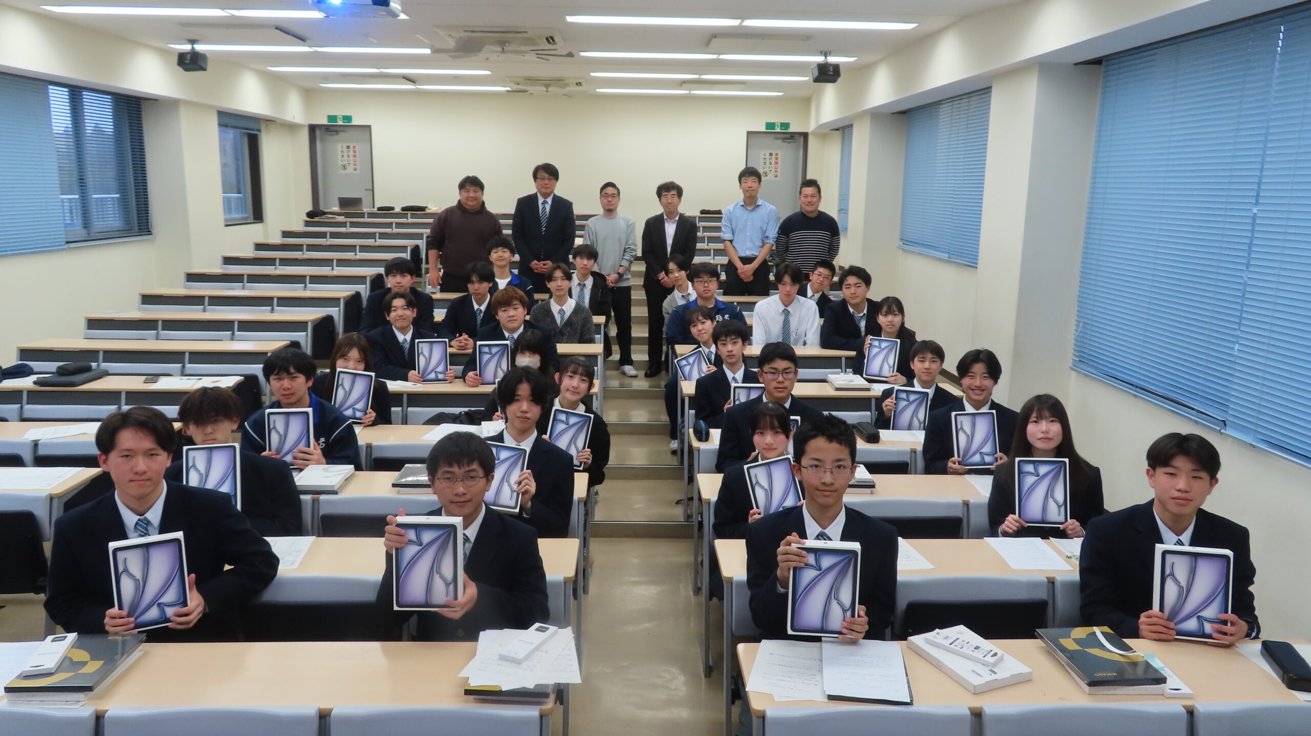 当日の授業は、DDコースの荒船博之准教授からコースの紹介が行われた後、学生同士が2人ずつペアになってそれぞれ興味がある研究内容などについてインタビュー形式の自己紹介があり、最後に探究活動用のiPad Air一式が手渡されました。DDコースの学生からは、コースを選んだ理由として、「自分から進んで何かをやってみたかった」、「1年生から探求できることに魅力を感じた」、「自分で気になる研究をメンターの先生とともに学べるところに興味を持った」などの声がありました。